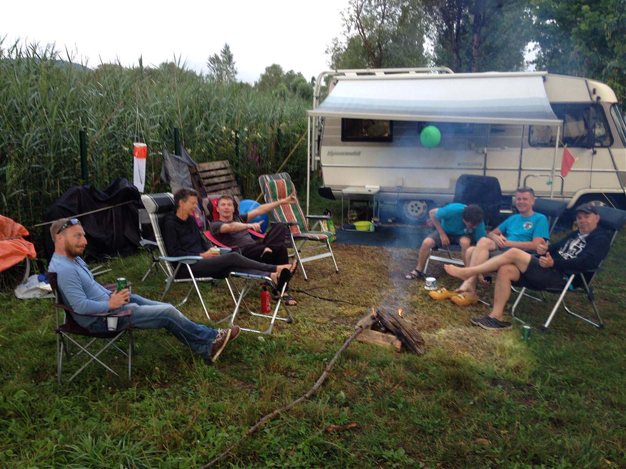 ‘s Avonds hebben we zelf gekookt en ik (Stefke) heb pasta gemaakt voor mijn 2 aangenomen zonen: McDirk en Bennie. Daarna hebben we een bezoekje gebracht aan Jan en Roos want daar waren we uitgenodigd voor een borrel bij het kampvuur. Heul gezellig!