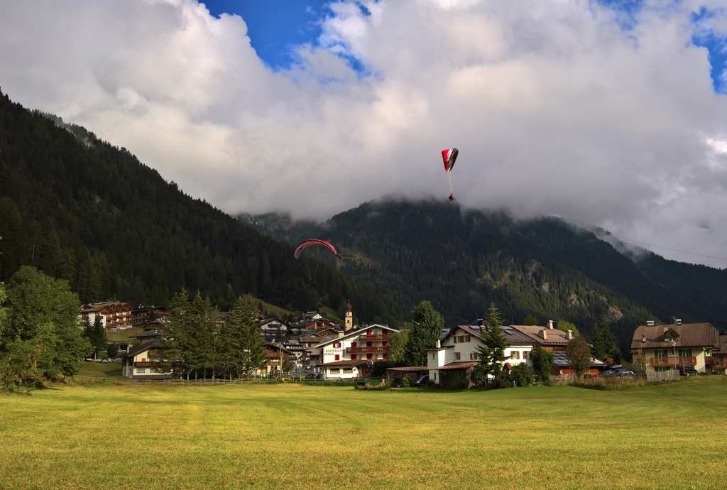 Na het ontbijt hebben we in de zaal het voorstelrondje gedaan en toen zijn we in de busjes gestapt om wat start- en landingsplekken te bekijken. Boven op de Pordoipas hebben we koffie gedronken in het restaurant en toen zijn we richting Canazei gegaan en nog wat start- en landingen bekeken. Het werd overigen steeds wat beter weer en af en toe prikte het zonnetje er doorheen. Ondertussen was het lunchijd en hebben we de huiskeet opgezocht in Canazei en daar heeft men zich vergrepen aan pizza’s, soep en andere lekkernijen.