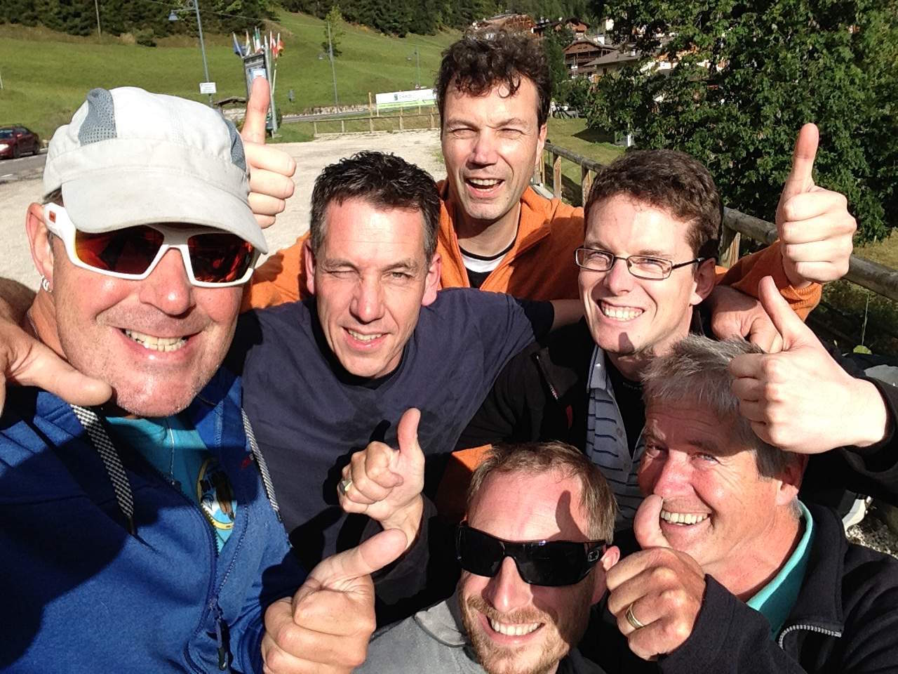 vervolgens zijn we in de busjes gestapt en weer de Pordoipas omhoog gereden. We hebben de startplek Brodol bekeken en toen werd het zelfs vliegbaar. Pieter stelde voor om gewoon een glijvluchtje te stelen en dat vonden 6 van de 17 piloten een leuk idee (Pietert, Bennie, Edgar, Job Mike en ik) en zijn naar beneden gevlogen. Was erg leuk en ik ging zelfs lekker omhoog. Alleen ontstond er en dikke wolk voor me en moest ik oren trekken om niet in de wolk te verdwijnen. We zijn daarna door Ayke opgehaald en het andere busjes was al richting Hotel gegaan.