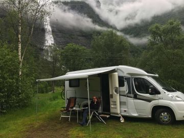 Uiteindelijk zijn we weer afgedaald en hebben we een prachtig plekkie gevonden op een camping voor Skjolden: “Vasbakken Kro og Camping“…